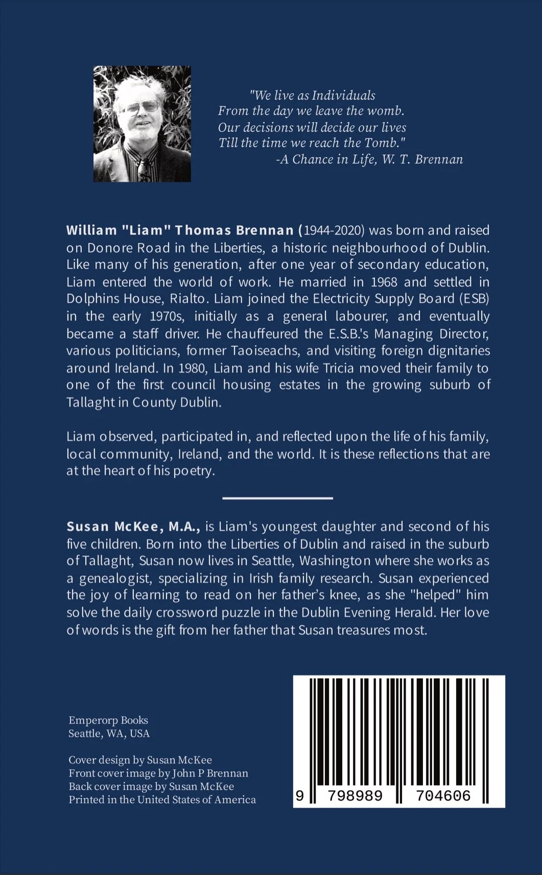 I am delighted to share that my book An Irish Life : Selected Poems of William Thomas Brennan has been published. It is a collection of poems written by my late father and are reflections on the life of his family, his local community in Tallaght (Dublin), and events in Ireland and the world. I am excited to take copies with me for my family when I visit Dublin this month.